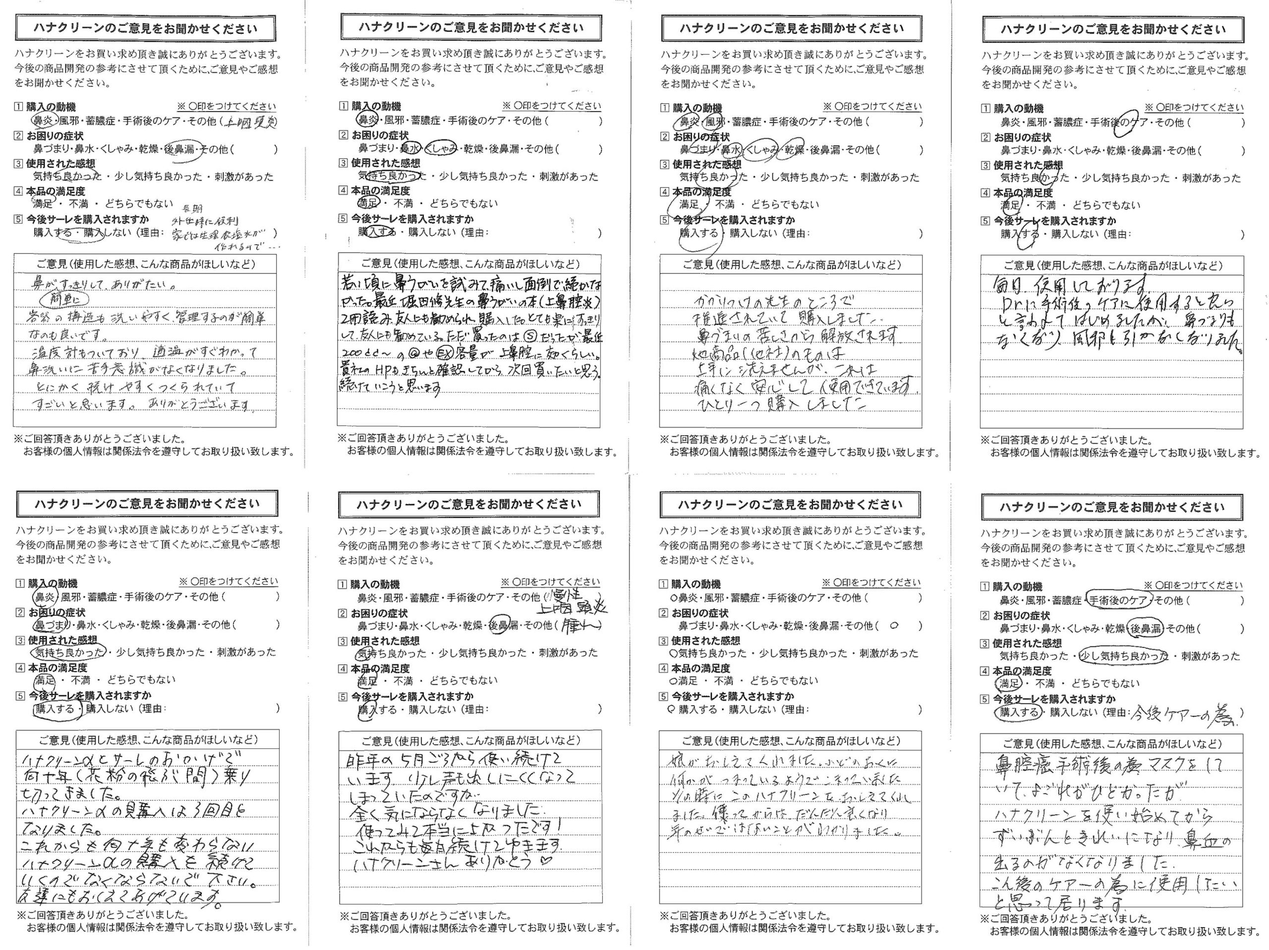 鼻腔癌手術後の為マスクをしていて、よごれがひどかったがハナクリーンを使い始めてからずいぶんときれいになり、鼻血の出るのがなくなりました。